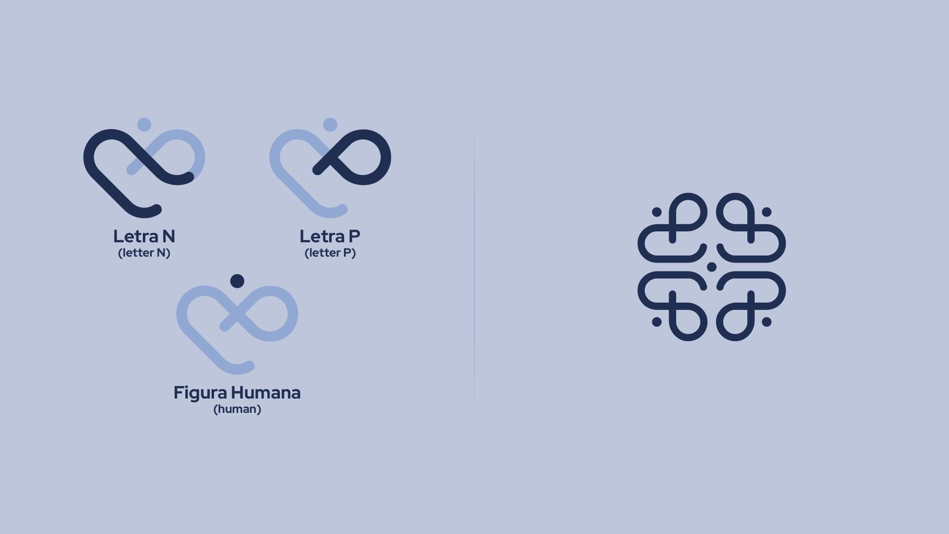 Um coração formado a partir das letras N e P, coroado por um círculo no topo que representa a figura humana. O conjunto traduz, de forma sensível e simbólica, os valores de acolhimento, empatia e cuidado, reforçando a presença humana da marca.